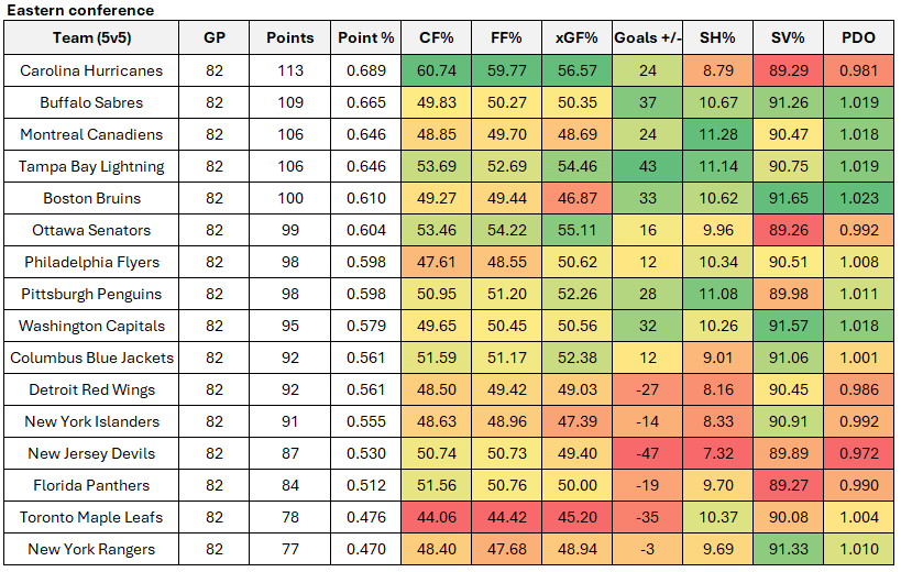 Other teams of note in the eastern conference, including Buffalo and Montreal.
