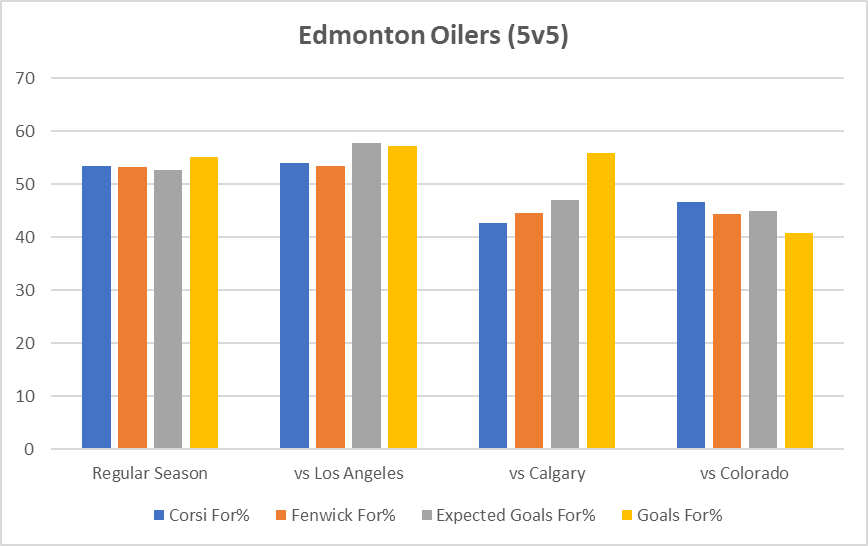 One last item was the Oilers special teams, which had great results in the regular season and the first round of the playoffs. But it started to decline against the Flames before getting crushed by the Avalanche.