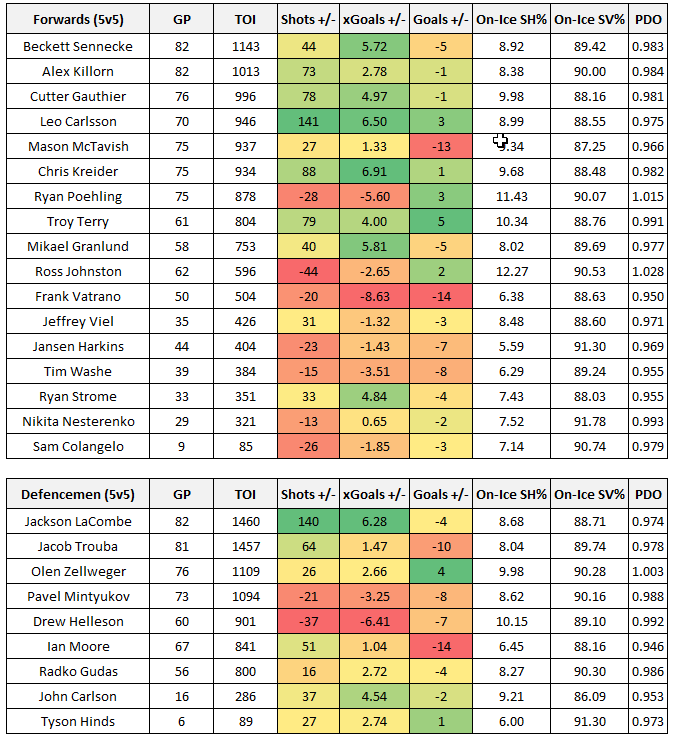 One area Edmonton improved upon over the course of the season was overall defensive play at even-strength, specifically around preventing high danger scoring chances against. Prior to the Olympic break, the Oilers rate of expected goals against was 2.70, which ranked 23rd in the league. The team did shave this down to 2.40 after the Olympic break, which moved them into seventh best overall. Anaheim went the opposite direction. They were 27th overall with 2.79 expected goals against before the break, and dropped down to 30th after the break with 3.26.