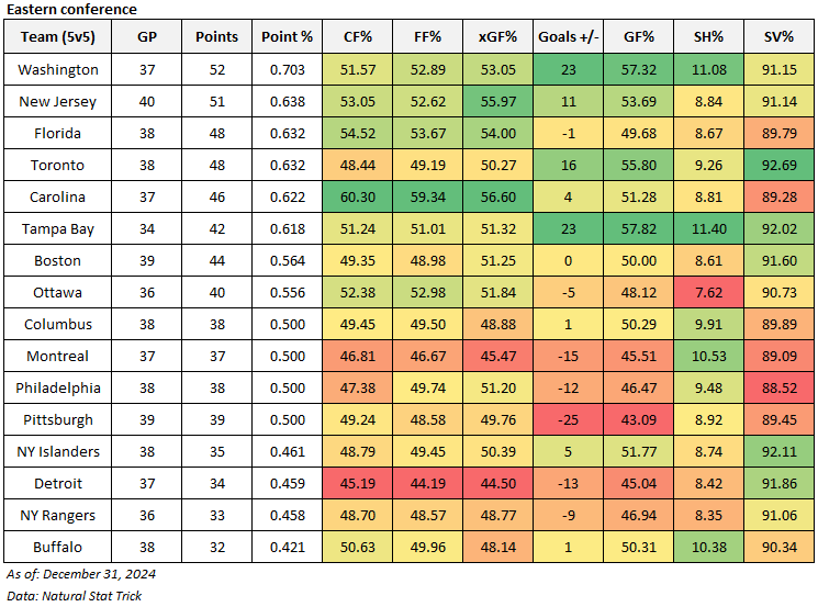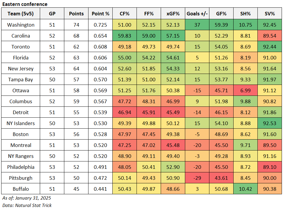 The first is that the team’s goaltending has been a weak spot for the team for a long time now, and hasn’t at any point this season been at or above league average levels. Because of this weakness in net, the team seems to be playing a little too safe now and not pushing for offence as frequently. Instead of taking chances and really leveraging the offensive talent they have up front, there are a few too many conservative plays happening, especially in this recent stretch of games.
