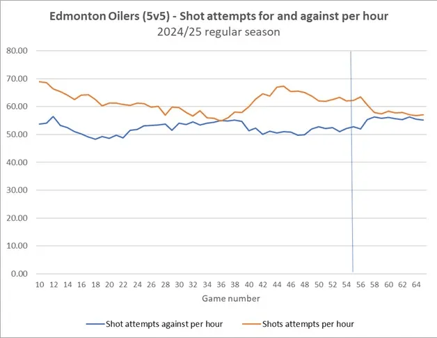 While there are some players riding the PDO wave, like the Lundell/Marchand/Luostarinen line (who have been excellent), there are others like Reinhart who have the potential to see their scoring pop at evens. Reinhart’s on-ice shot-share numbers have been excellent, but he has only broken-even in terms of goals. Suspect the Panthers coaching staff will heavily target Darnell Nurse, as well as Henrique, Brown and Janmark. As I wrote recently, the Oilers tend to allow a lot of shots with these players on the ice – a trend that has continued since the regular season.